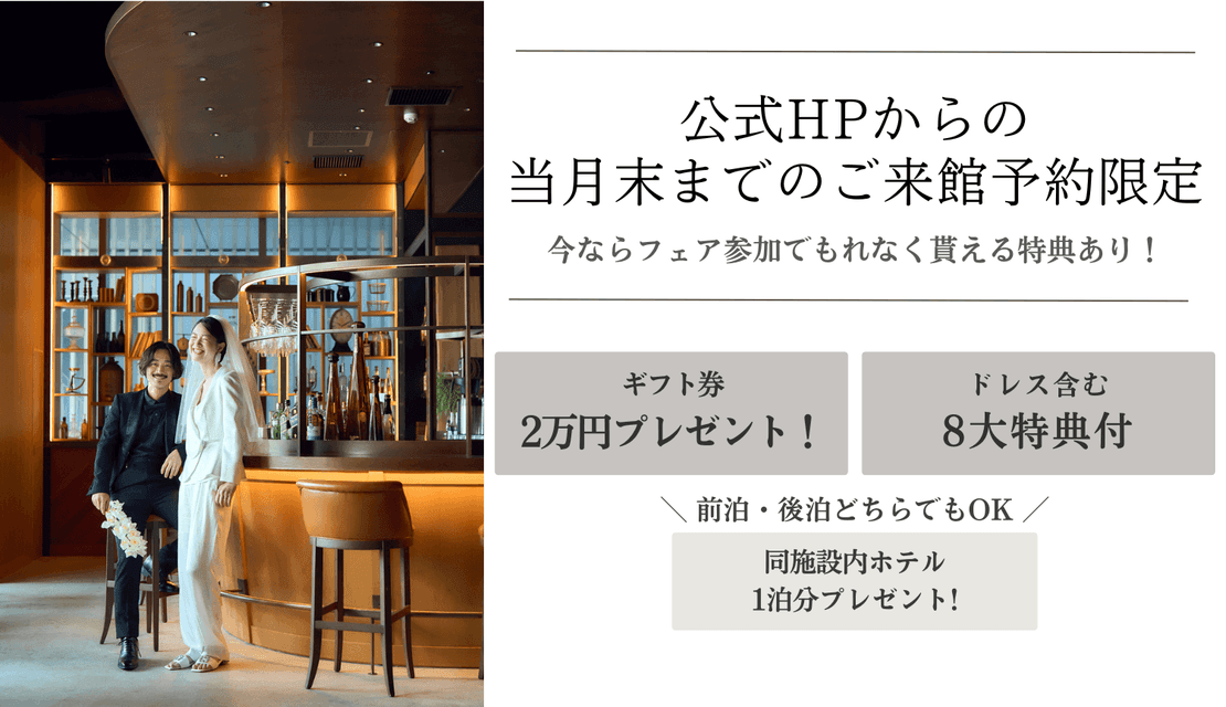 適用期間2025/11/13〜【後日フェア成約特典】挙式料・衣装・装花・引出物など、最大級の豪華特典をご用意♪